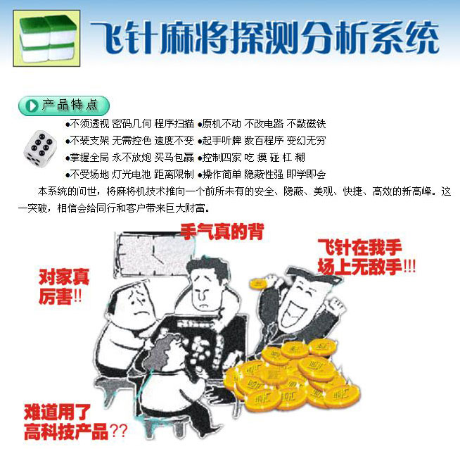 今天惊人的研制出“飞针麻将探测分析系统”攻破出千麻将机所有难关,全面升级,将以前的弊病全部解决!